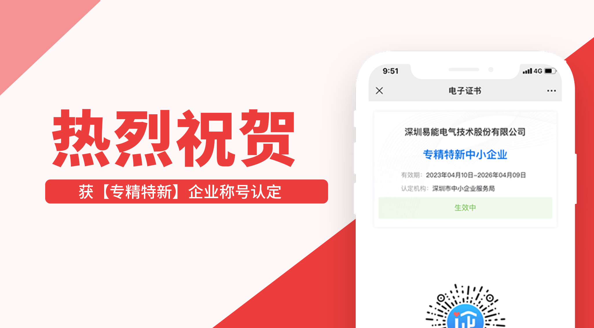 喜報I易能電氣榮獲【專精特新】企業榮譽稱號